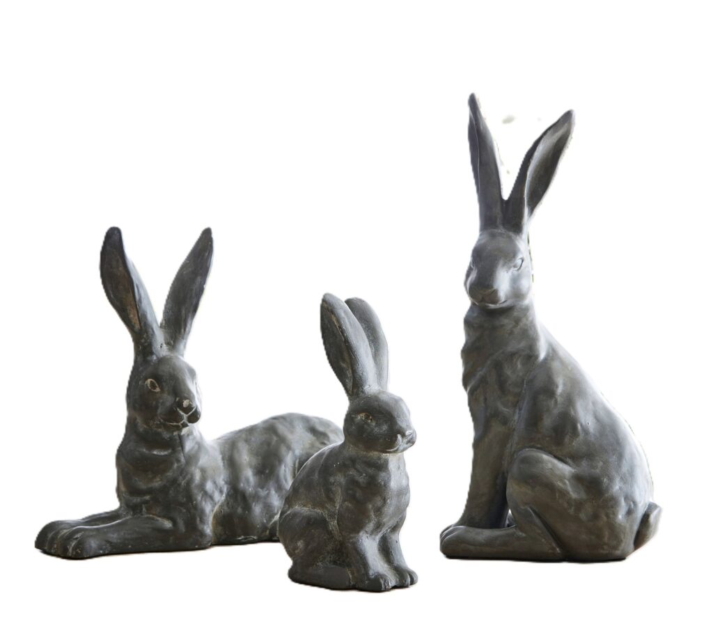 These whimsical sculptures come in all sizes, poses, and attire, so there’s one sure to suit your style. We used a couple on one of our tablescapes last year (and I’m sure they’ll make a return this Easter).