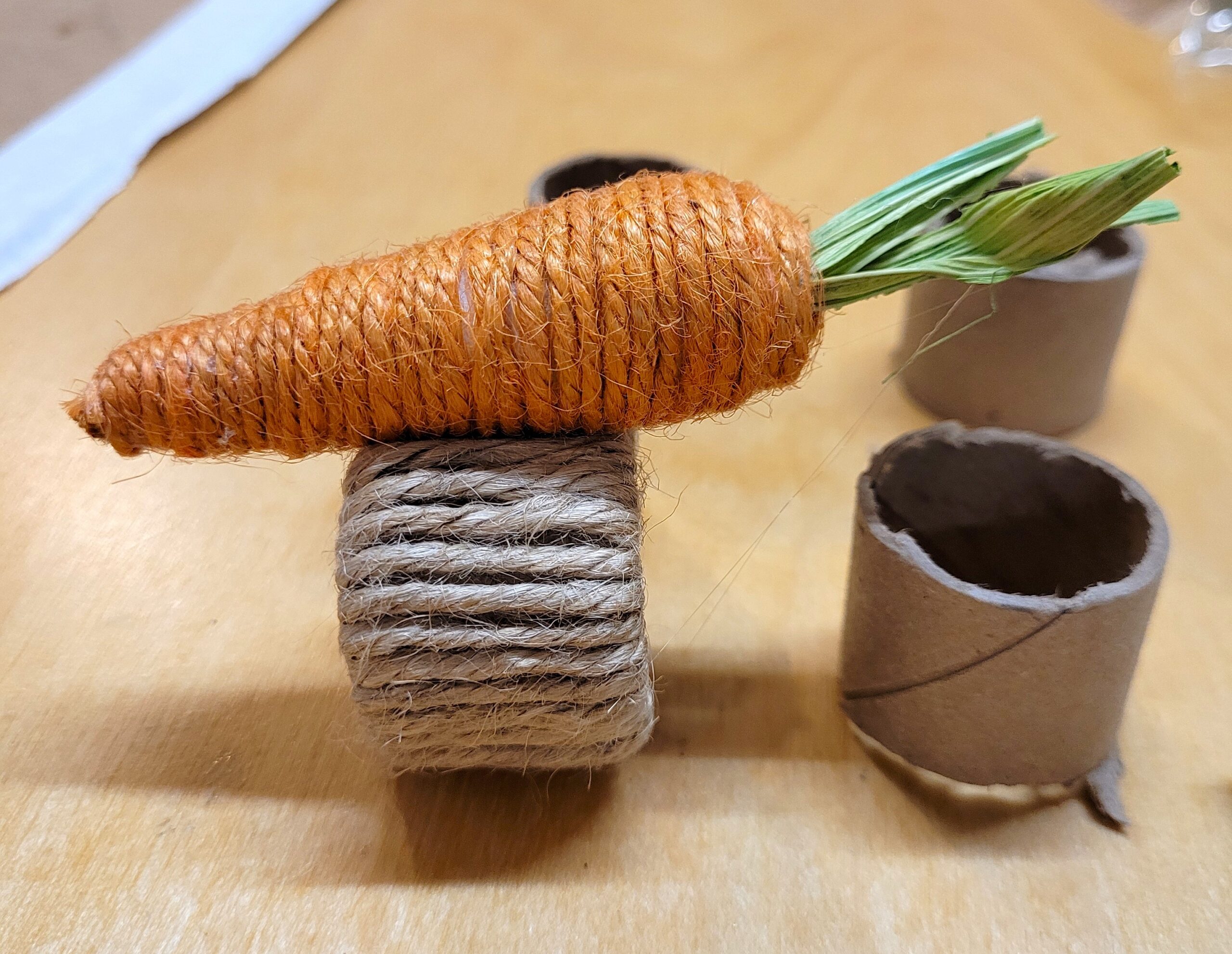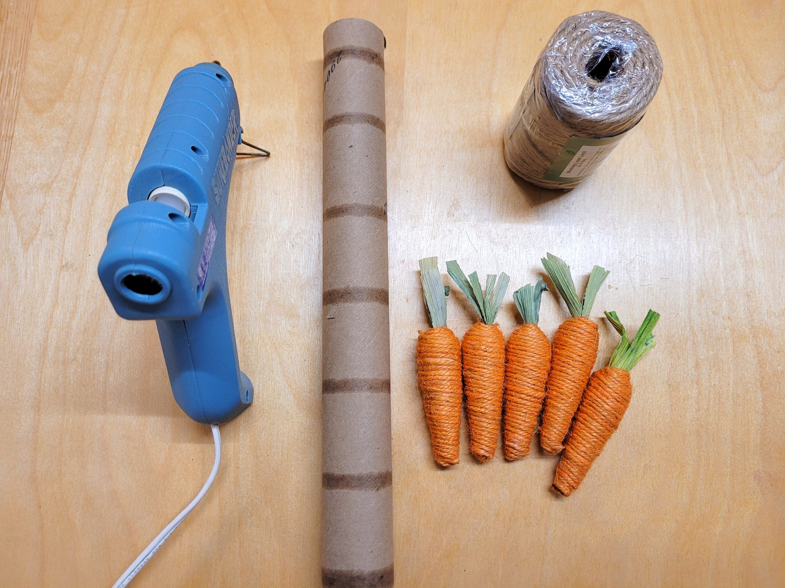 Made from a cardboard tube, twine, mini jute carrots, and hot glue, they’re as inexpensive as they are cute.