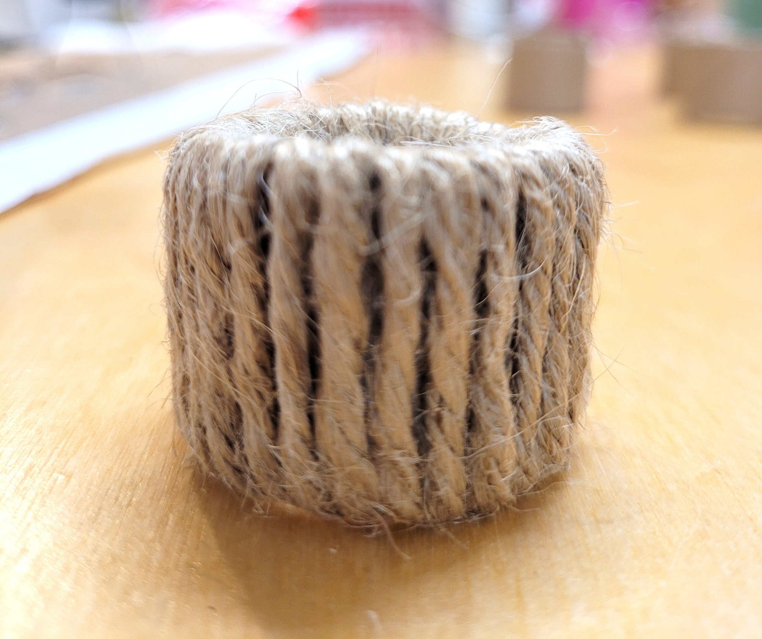 Then begin wrapping the twine all the way around until the ring is entirely covered. Be sure you don’t leave any big gaps.